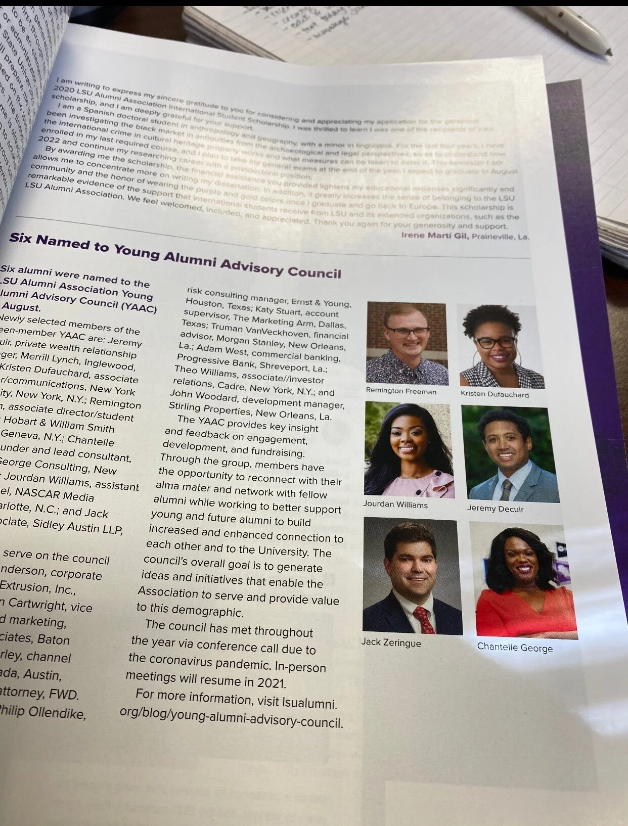 Six LSU alumni were named to the LSU Alumni Association Young Alumni Advisory Council (YAAC) in August 2020. Congrats Chantelle!